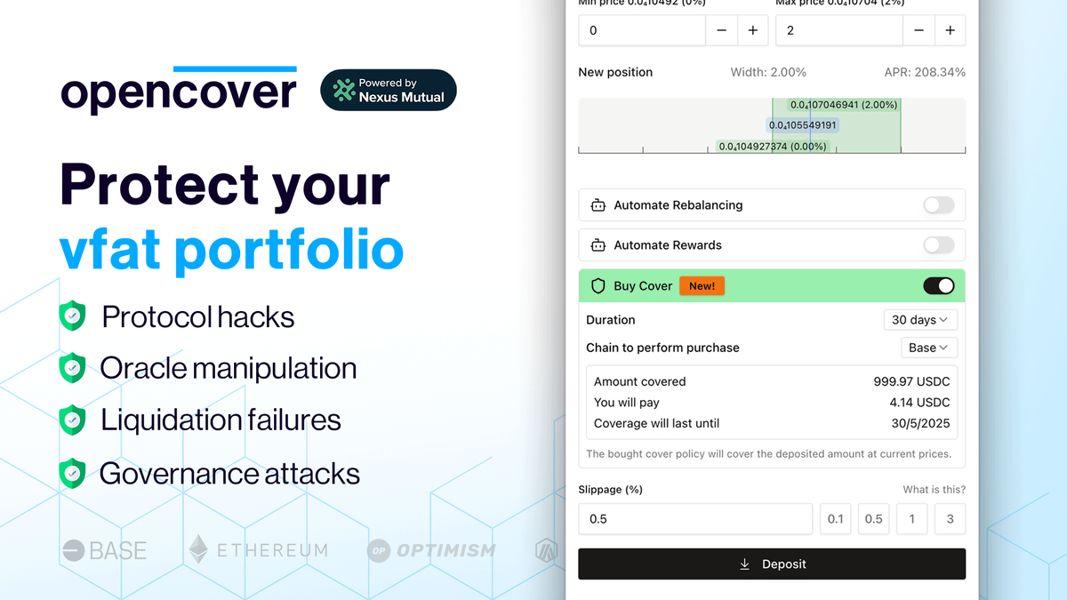 Uniswap v4 🦄 has been added to the vfat Multi Protocol Cover’s Annex Policy, joining a growing list of protected third-party protocols.