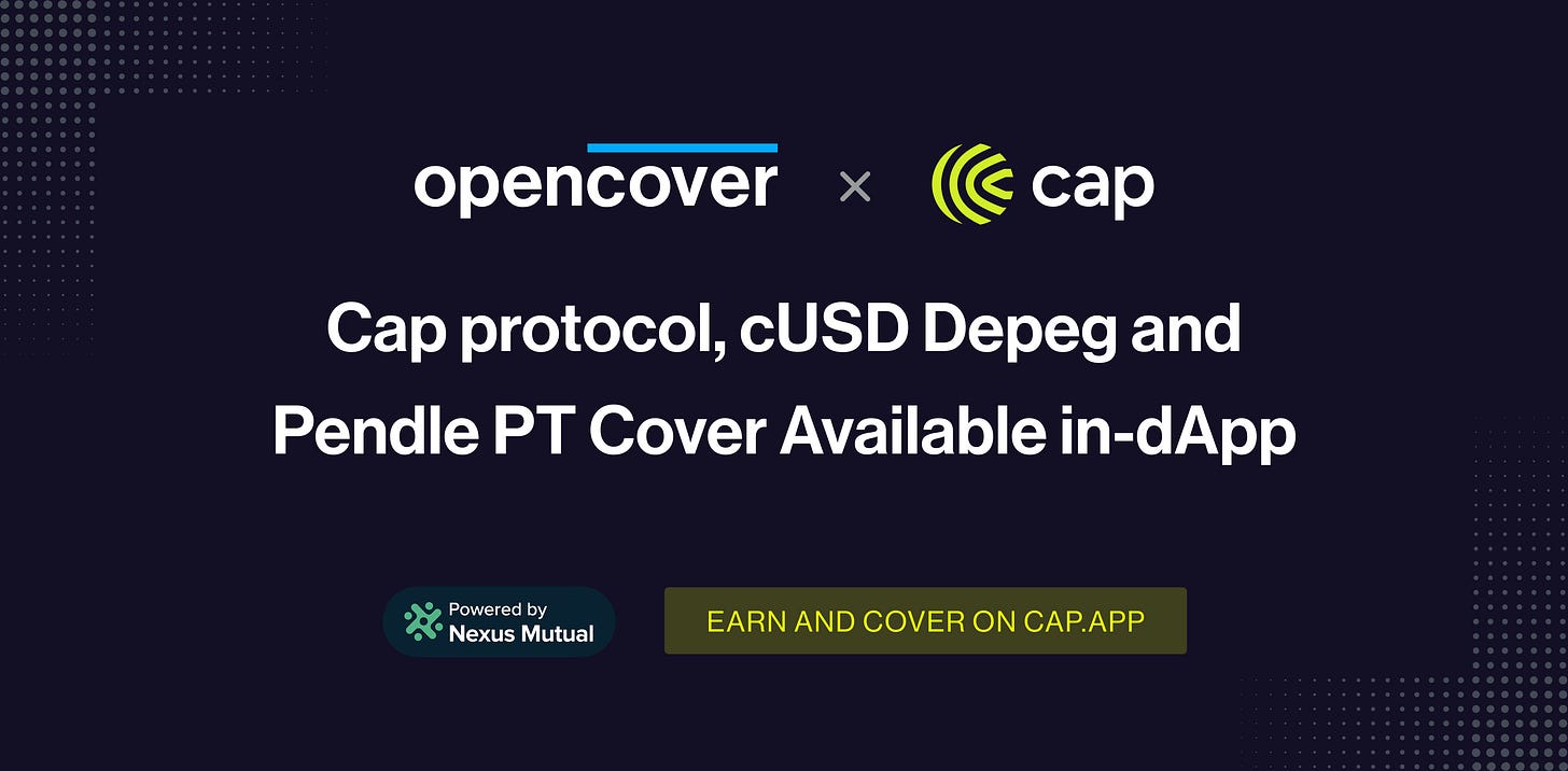 The Cap integration makes it easier than ever to protect your onchain wealth. Without leaving the dApp, you can purchase cover on your Cap positions, and rest easy knowing you are protected in case of smart contract exploits or depegs.